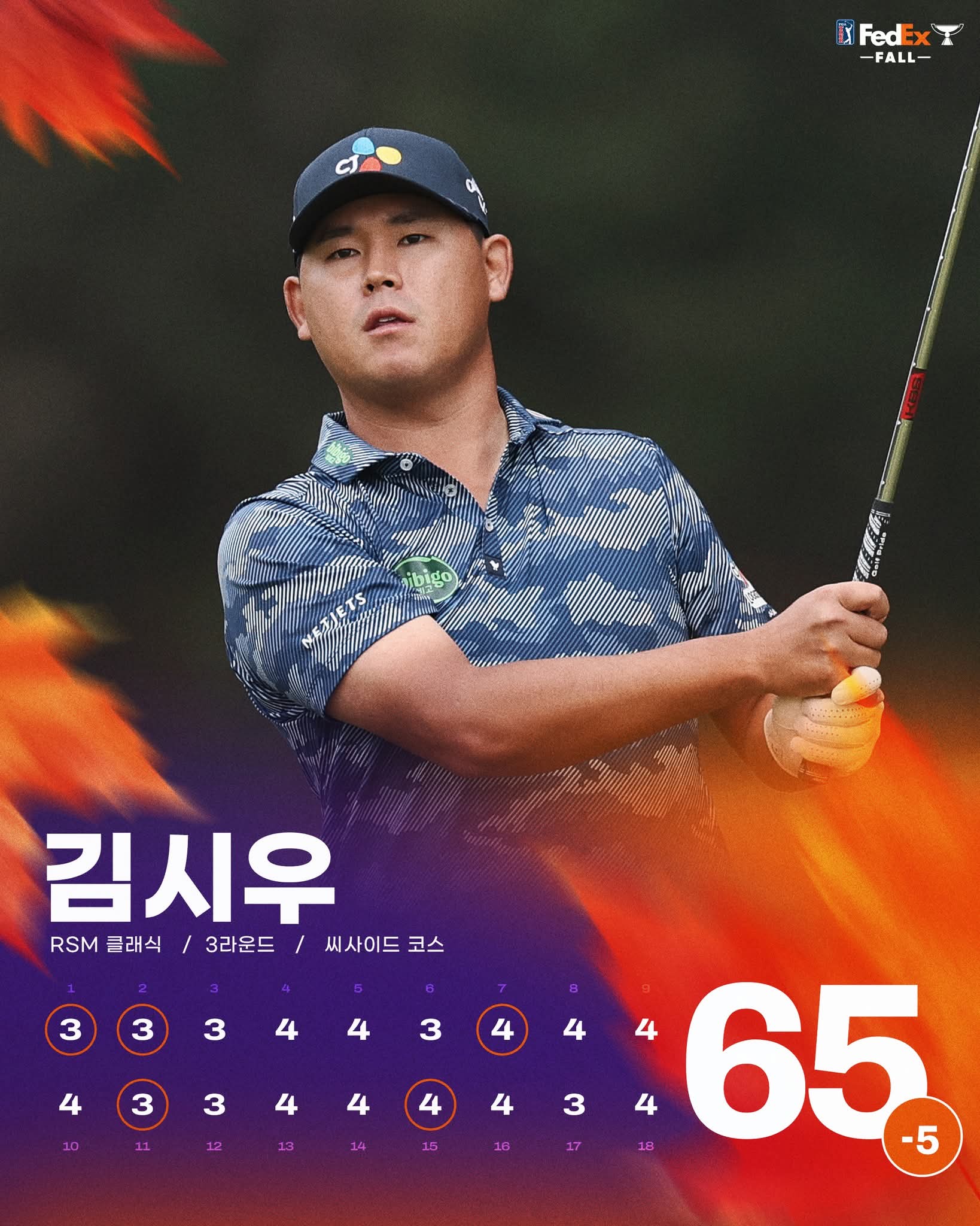 김시우가 2025시즌 미국프로골프(PGA) 투어 마지막 대회인 RSM 클래식(총상금 700만달러) 3라운드에서 상위권으로 뛰어올랐다.