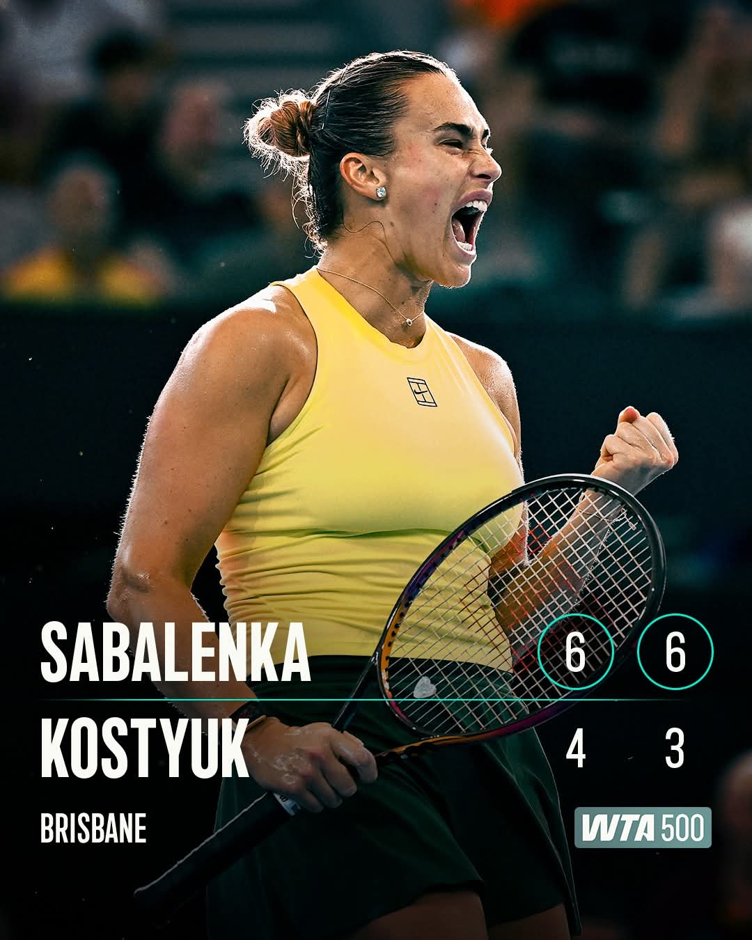 사발렌카는 11일 호주 브리즈번에서 열린 WTA 투어 브리즈번 인터내셔널(총상금 169만1천602달러) 대회 마지막 날 단식 결승에서 마르타 코스튜크 (26위·우크라이나)를 2-0(6-4 6-3)으로 물리쳤다.