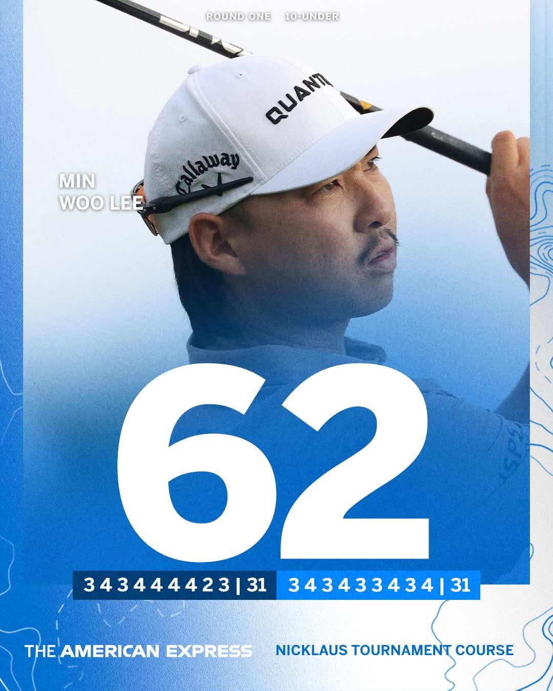 10언더파 62타로 공동 1위에 오른 이민우(호주), 피어슨 쿠디(미국)와 불과 1타 차인 김시우와 김성현은 세계 랭킹 1위 스코티 셰플러(미국) 등과 함께 공동 3위로 1라운드를 마쳤다.