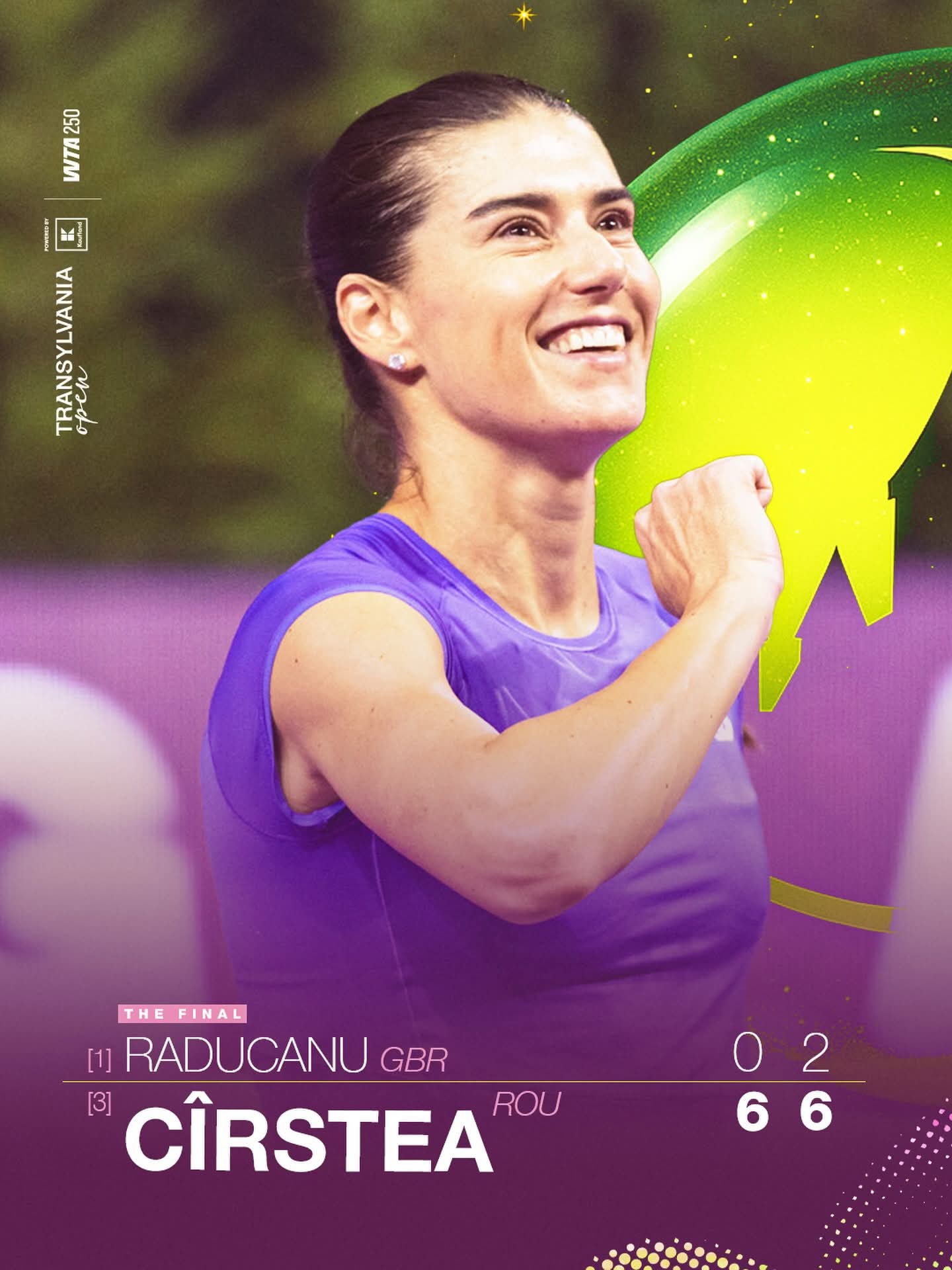 크르스테아는 7일(현지시간) 루마니아 클루지나포카에서 열린 여자프로테니스(WTA) 투어 트란실바니아오픈(총상금 28만3천347달러) 대회 마지막 날 단식 결승에서 라두카누를 2-0(6-0 6-2)으로 완파했다.
