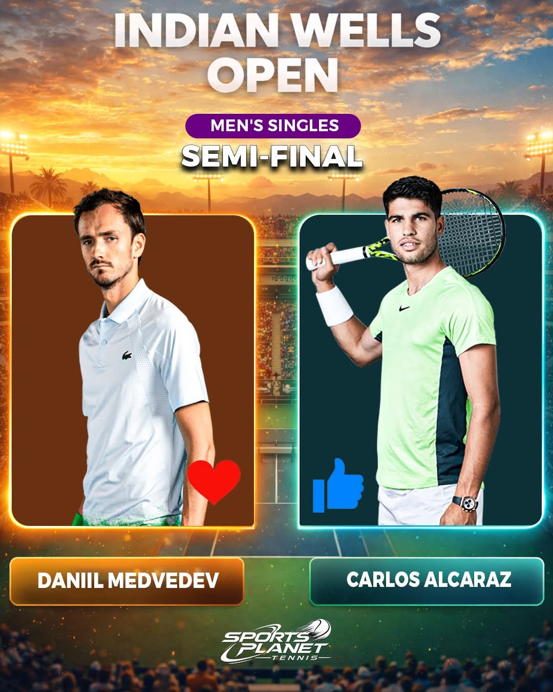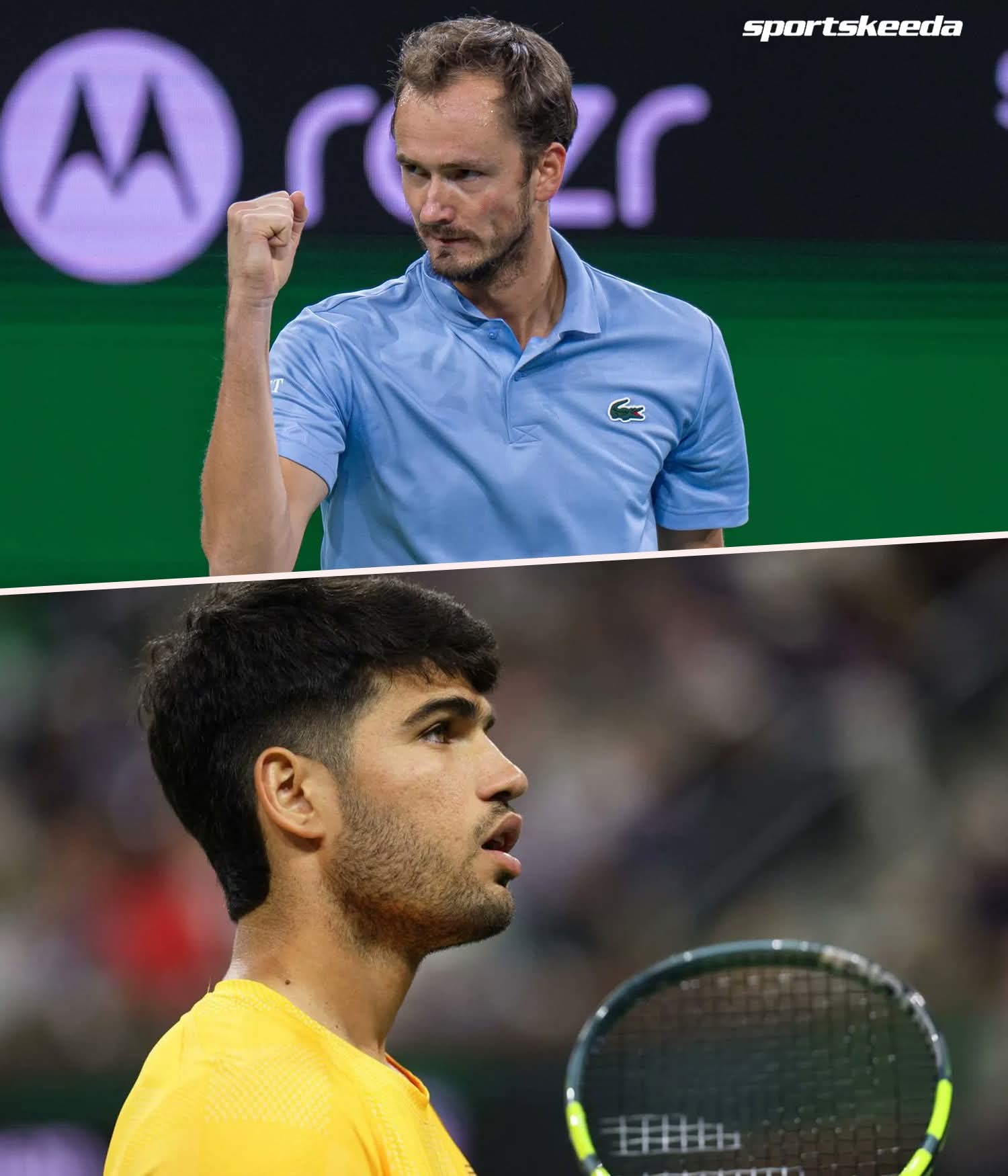 캘리포니아 사막의 더운 날, 메드베데프는 알카라즈의 기본 플레이에 지치는 듯했고, 스페인 선수는 이점을 찾기 위해 모든 지점에 전력을 쏟아야 했습니다. 알카라즈는 2세트 초반 브레이크로 기세를 잡았고, 이후 세트 포인트 2점을 얻었지만 결정력을 강요할 수 없었습니다.