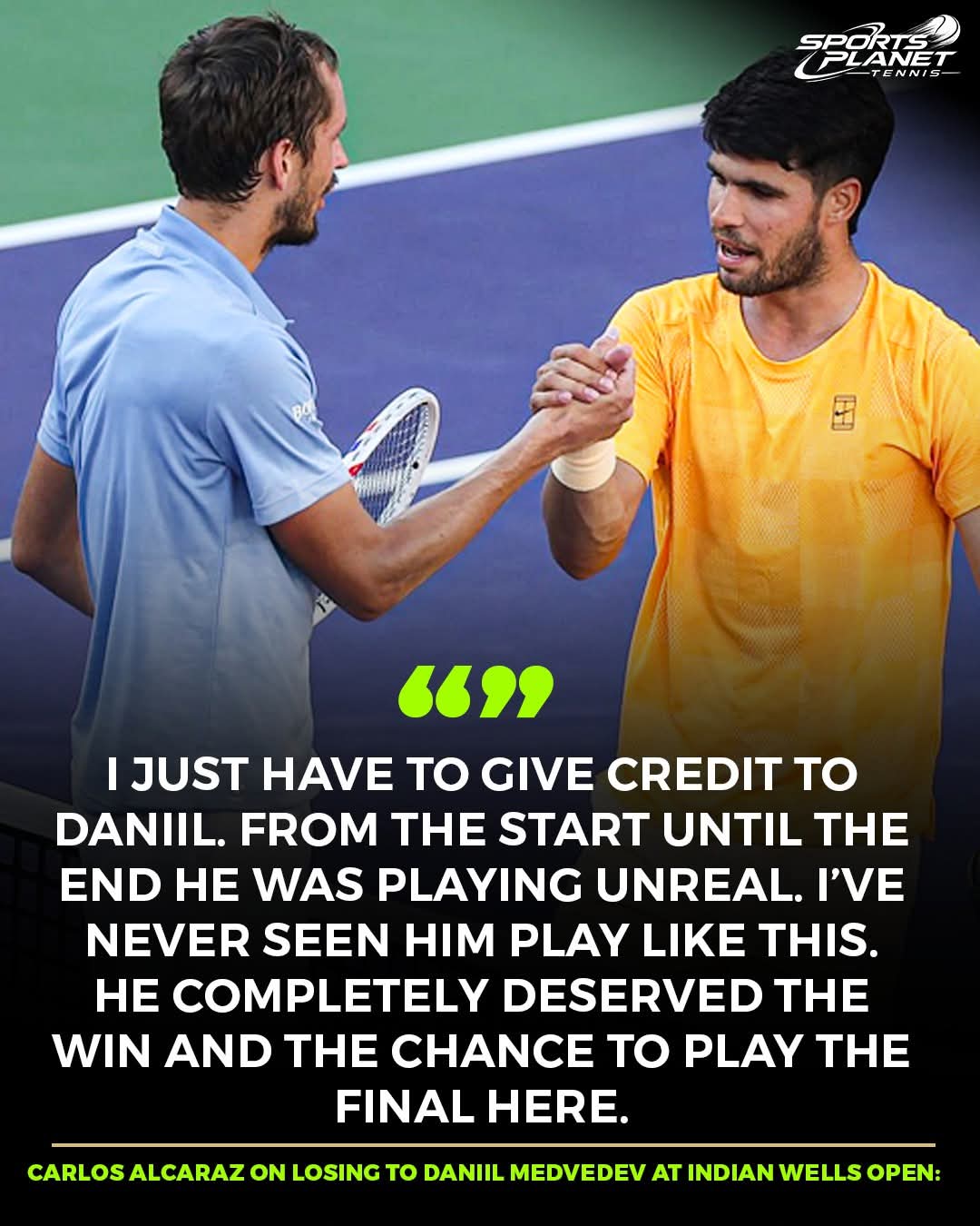 알카라즈는 메드베데프의 패배에 대해 이렇게 말했습니다: '다니엘이 이렇게 뛰는 것을 본 적이 없습니다.'