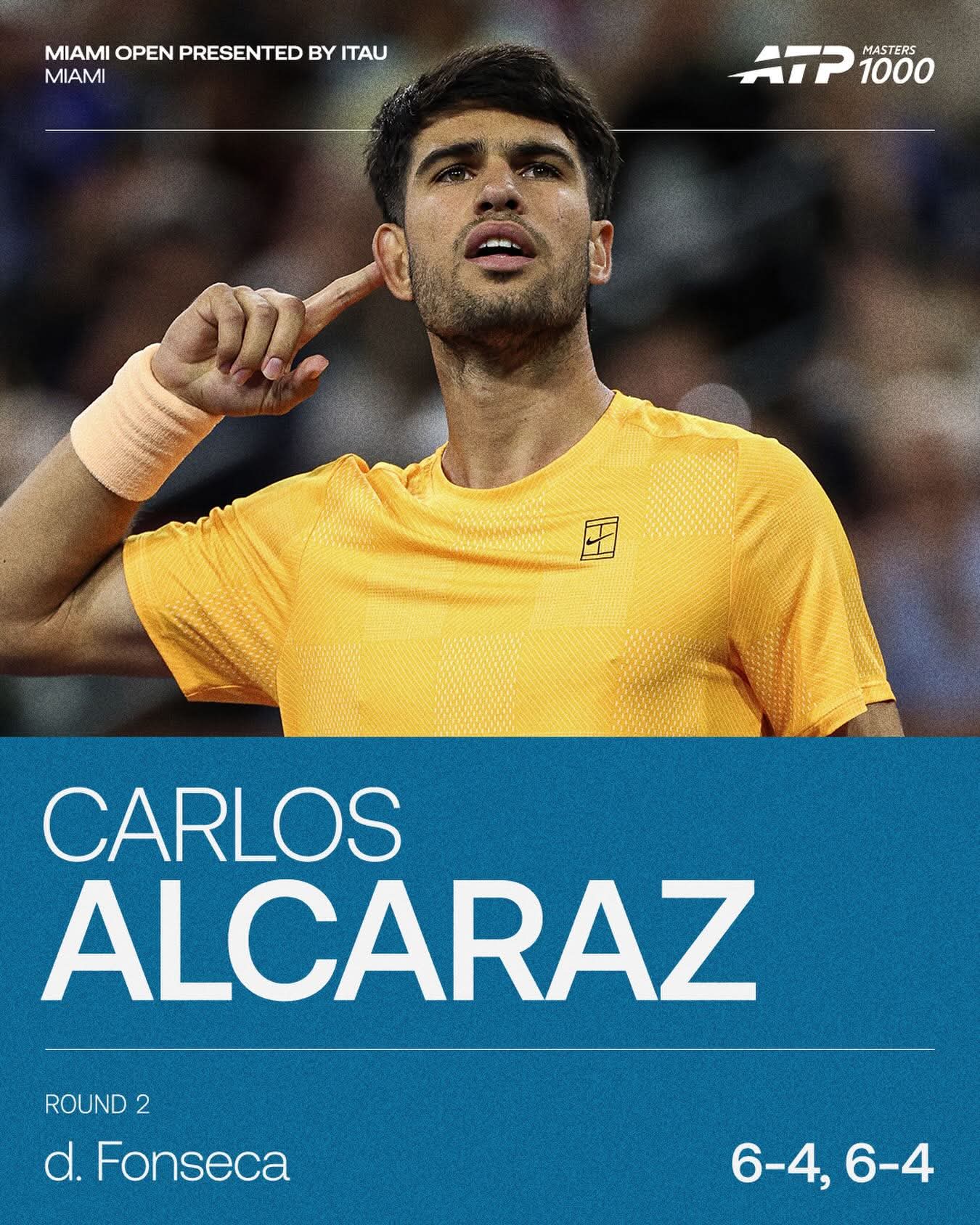 6일 전 인디언 웰스 준결승에서 다니엘 메드베데프에게 시즌 첫 경기를 패하며 무표정한 모습을 보였던 세계 랭킹 1위는 2년 연속 2라운드 역전패를 피하기 위해 브라질을 상대로 한 경기였습니다. 알카라즈는 매 세트 초반 폰세카를 꺾으며 자신이 직면한 세 가지 브레이크 포인트를 모두 살렸습니다, 26명의 우승자를 상대로 22개의 언포스드 에러를 기록했고, 첫 서브의 거의 70%를 성공시켰습니다.