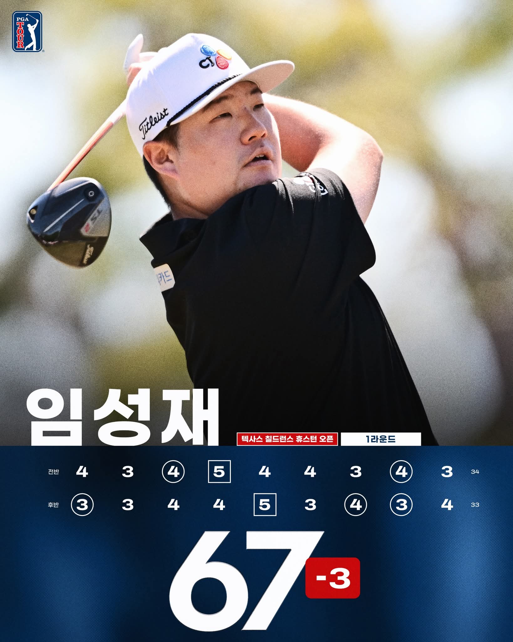 임성재는 27일(한국시간) 미국 텍사스주 휴스턴의 메모리얼 파크 골프코스(파70·7천475야드)에서 열린 미국프로골프(PGA) 투어 텍사스 칠드런스 휴스턴 오픈(총상금 990만달러) 1라운드에서 버디 5개, 보기 2개를 합해 3언더파 67타로 공동 11위에 올랐다.