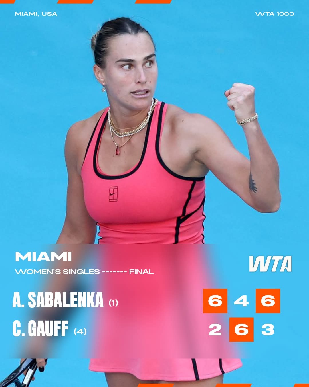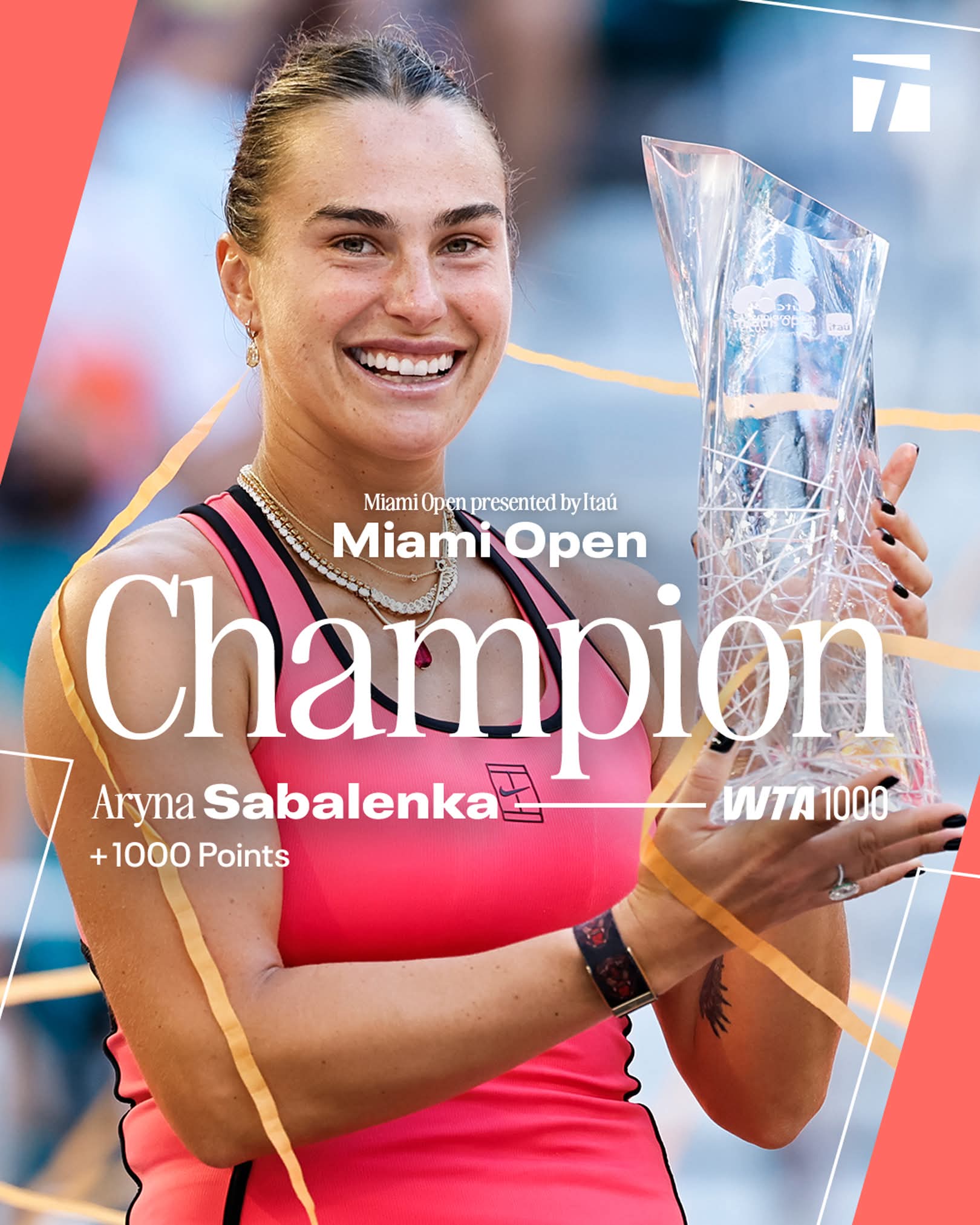 아리나 사발렌카(1위·벨라루스)가 마이애미오픈 정상에 오르며 희귀 기록 '선샤인 더블'을 완성했다.
