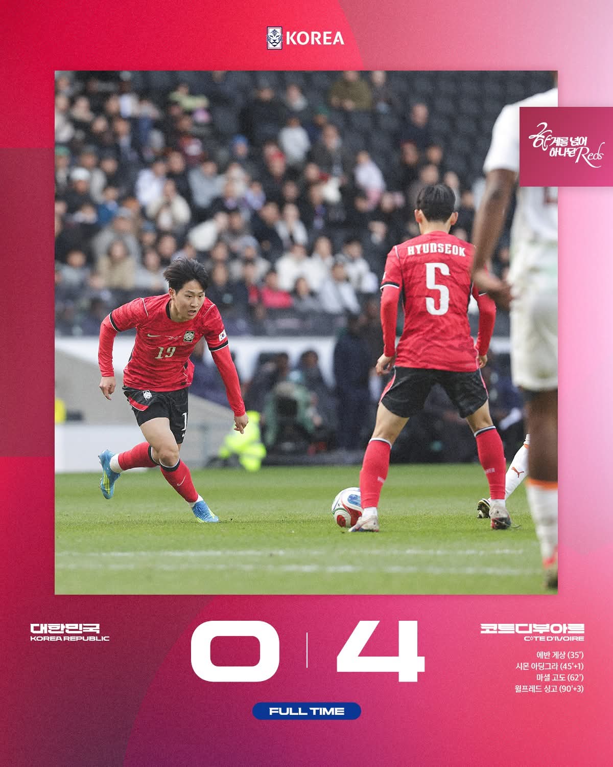 2026 북중미 월드컵을 준비하는 홍명보호가 올해 첫 A매치에서 코트디부아르에 4골차 대패로 고개를 숙였다.